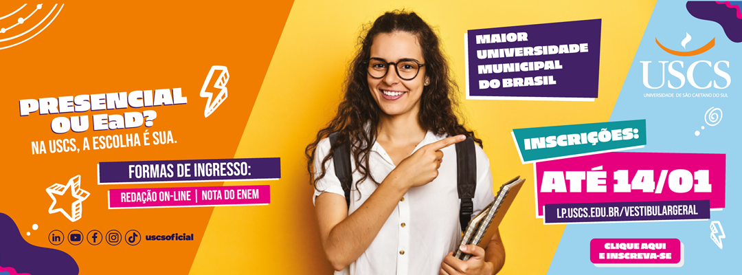A USCS está com inscrições abertas em mais de 60 cursos de graduação presenciais e, além disso, também oferece opções no formato EAD. Com um corpo docente altamente qualificado e uma infraestrutura moderna, nossa missão é ajudar você a conquistar conhecimento e um mundo de possibilidades.